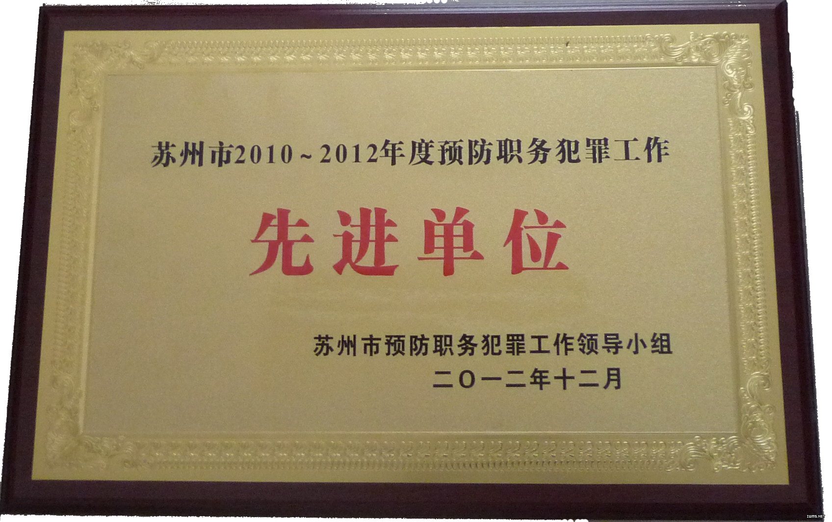 我院获得“苏州市2010-2012年度预防职务犯罪工作先进单位”荣誉称号