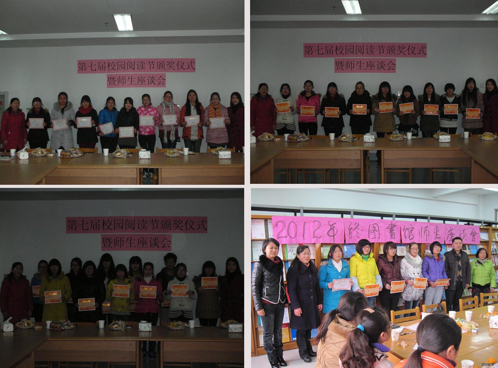(张宜英、魏炜 摄)临近岁末,我院2012年第七届校园阅读节各项活动均已画上圆满句号。2013年1月11日和14日下午,信息中心与团委和书院办分别在石湖和书院校区图书馆成功举行第七届校园阅读节获奖学生代表师生座谈会。参加石湖及书院校区学生座谈会的学生代表共有70余名,包括全国“我拿青春读明天”征文一二三等奖获者、第七届校园阅读节“阅读之星”获得者、优秀班级图书信息员、“书香伴我成长”征文活动一、二等奖获奖者及书院读书小组成员等。书院校区办公室主任程道光、副主任钱学欣,书院校区副主任、口腔系党总支副书记朱晓飞,学院团委副书记刘千贺、文化艺术中心主任钱晓蓉,学生读书兴趣小组指导老师李克英、黄瑶瑶、金丽芬、赵丽华、魏炜等老师,及信息中心主任蔡小红、图书馆副馆长包祖军、崔倩及图书馆读者服务部各位老师参加了座谈会。