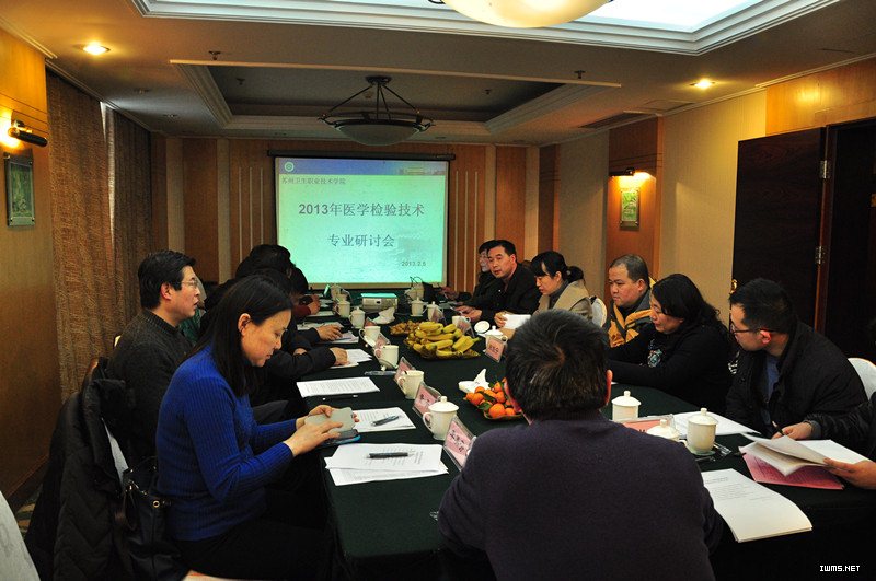 (陆玉霞 摄)为推动中央财政支持的医学检验技术重点专业建设,寒假期间检验药学系于三元宾馆五楼会议室召开医学检验技术专业研讨会,会议邀请省内包括省疾病预防控制中心、南京医科大学第二附属医院、苏州大学附属第一医院等11家三级甲等综合性医院检验科主任。参加此次会议的还有学院吴丽荣副院长,教务处宋悦宁副处长,科技处张雅娟副处长及专业教师。