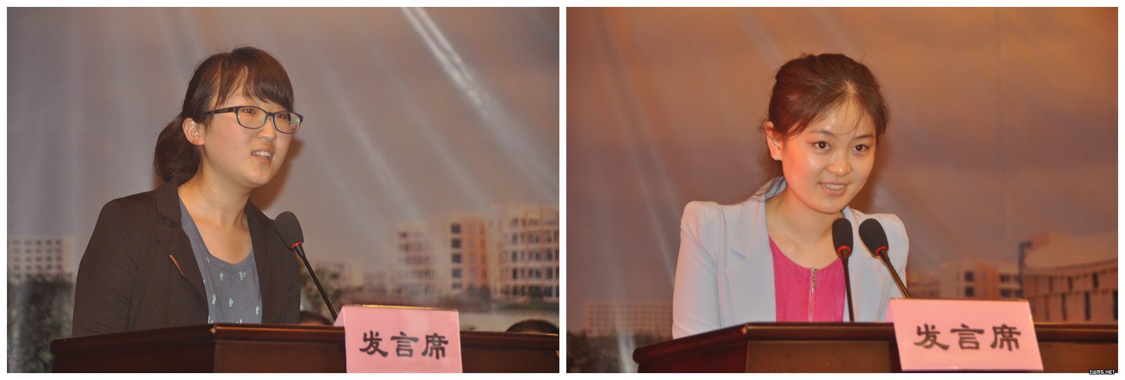 随后,护理系仇玲凤老师和酒管办朱青青老师分别作为教师代表发言。两位老师都为2013届全体毕业生圆满顺利毕业而高兴,并希望毕业生们能永远坚持自己的梦想,怀揣“天道酬勤”的心态,明确自己的职责,也能永远珍惜同学间的情谊。最后,两位老师再次期盼毕业生们能积极工作,勇担重任,在平凡的工作中,服务于大众,将光和热无私地奉献给社会。