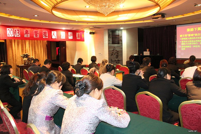 (应亮 摄)2013年4月12日下午,三元宾馆举办主题为“如何激励下属员工”的管理人员讲座,此次讲座由宾馆总经理助理沈洁红主讲,宾馆领班以上管理人员参加。沈总运用案例分析与互动交流的方式,从“激励下属的方式”、“下属怎样乐于听命于上级”、“引爆员工潜力的方法”、“如何看待下属的抱怨”、“有效倾听的九个原则”等方面进行了阐述。讲座后,管理人员结合管理中的问题进行了积极的讨论。通过本次讲座,宾馆管理人员对如何激励员工有了更进一步的认识,对人力资源管理的重要技能有了深入了解。