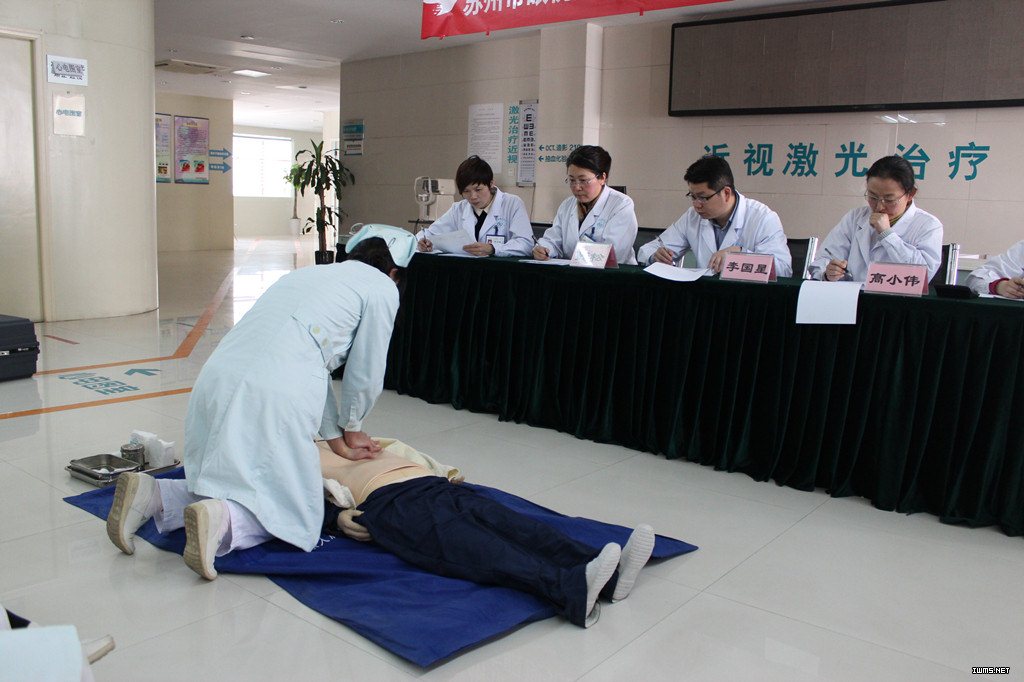 (李守龙 摄)上周,附属眼视光医院开展了“庆祝5.12国际护士节心肺复苏技能竞赛”活动,本次活动的开展,既是对医院护理工作的一次检阅,又进一步提升了医护人员临床操作和急救技能水平。副院长李国星、贾松、黄晓琼和医务部主任高小伟等出席竞赛活动,并担任竞赛评委,护士长陈娟主持此次活动。