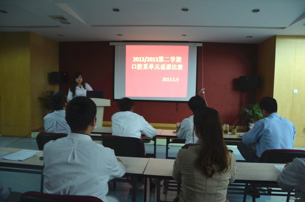 为了加强口腔系教师间教学经验的交流,传递先进的教学理念,探讨科学的教学方法,促进教学手段改革,提高教师的教学水平,达到以“说”促“教”的目的,于2013年5月9号在附属口腔医院五楼会议室举办了2012/2013学年口腔系青年教师说课比赛。