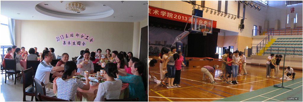 分工会还组织了集体生日会为老师们庆生,全体老师齐聚营养食堂,共同分享一年的收获和体会,畅谈未来的计划,其乐融融。团队拓展活动则在轻松愉快的氛围中举行,老师们通过破冰游戏,以教研室为基础形成了合作团队,在各小组的共同努力下,完成了“物尽其用”、“龙舟争渡”等各项任务,加深了协作的信心,增进了友谊。