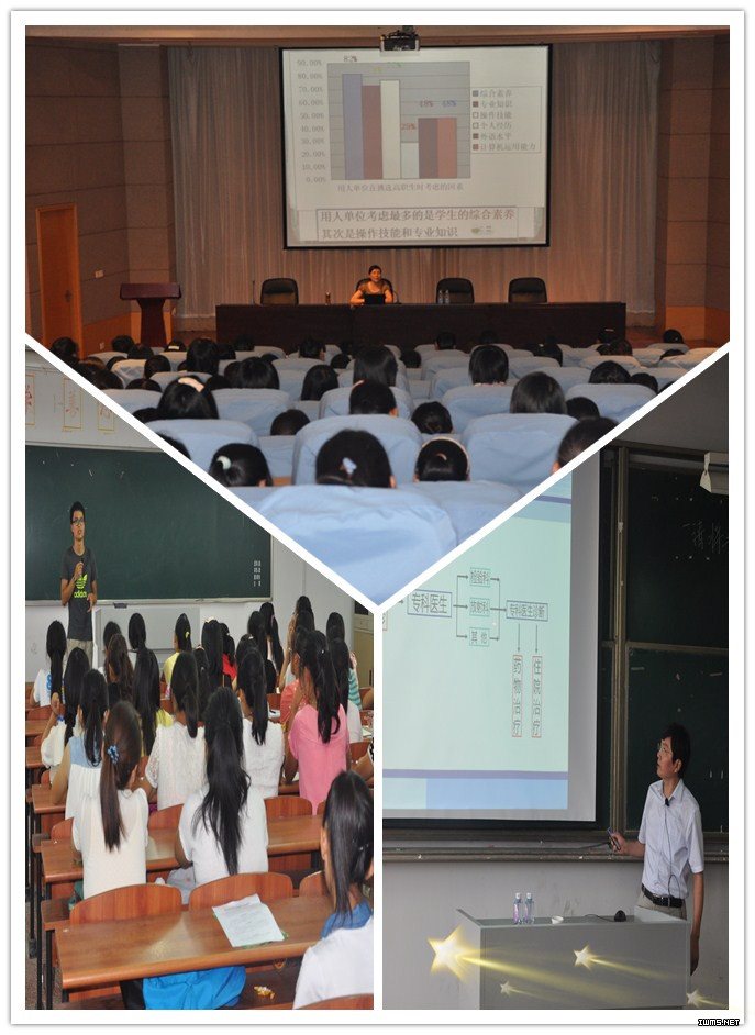 医学技术学院今年共有六个专业招生,既有传统的优势专业如医学检验技术、卫生检验与检疫技术、医学营养、康复治疗技术,也有新开专业如医学影像技术、医学生物技术,共计招生650余人。通过邀请行业专家、专业带头人以及毕业生代表对各专业新生从专业办学理念、国内外发展现状、专业发展前景、办学特色、课程设置、就业前景等方面进行了专业教育。希望同学们进入大学后转变思维方式、学习方式和生活方式,尽快适应大学生活。专业教育后,专业带头人还就新生关心的专升本、实习实训、职业资格证书等问题给予解答。