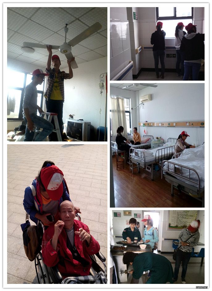 10月20日早上,在我院爱心社负责人的带领下,15名爱心社成员前往护理院,一路上同学们热情洋溢,激动万分。到达护理院后,在工作人员的介绍下,大家就各自找到了聊天的老人。本以为聊天只是再简单不过的事情,但那时学生们才意识到原来同老人聊天也是要有技巧的。护理院的老人们大都是岁数比较大的,他们有的语速很慢,有的听力很差,这都需要同学们有足够的耐心。与老人聊天的内容也是很有讲究的,毕竟是相差了大半个世纪的人了,于是同学们尽力去想一些我们所知道的老人那个年代感兴趣的事情,比如同老人聊过去的峥嵘岁月,聊子女的工作,聊最近的天气或是聊老人的身体近况等等。不多久,孩子与老人之间彼此增加信任和亲热。最后志愿者们分成四组在护士长的分派下,有的帮忙擦拭病房里的电风扇;有的在四楼八病区帮忙打饭;剩余的同学帮忙擦拭玻璃门窗等,大家都沉浸在暖暖的氛围中。