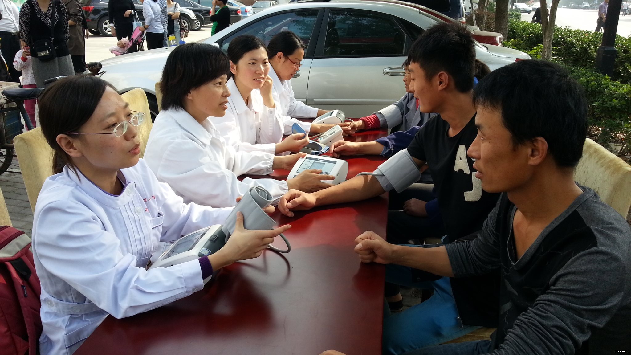 2013年11月9日,阳光和煦,护理学院党总支来到苏州东山镇开展“践行群众路线,服务基层,惠民义诊”主题党日活动。 党员们携带电子血压仪等医疗器械,耐心地为居民进行现场诊断,并解答居民在糖尿病、高血压等慢性病的防治、季节性皮肤病以及其他突发疾病的防治疑问。在解答疑虑的同时,深入了解居民日常生活方式和行为习惯,纠正其对健康知识的认识误区。大家专业的诊疗技术和体贴入微的服务得到了东山镇居民的充分肯定和一致好评。