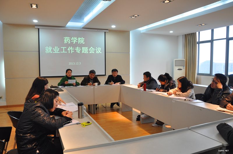 2013年12月3日下午,药学院就业工作专题会议在实验楼五楼会议室召开,就业工作指导小组成员药学院院长王德华、党总支书记王子林、副书记邵敏,药学院学工办和综合办正、副主任,辅导员、2014届毕业班班主任参加了本次会议。