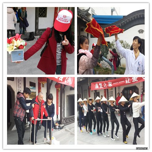 苏州福星护理院是国家民政部授予的《全国爱心护理试点工程单位》,是一所集医疗护理康复临终关怀为一体的综合性护理院。通过此次活动给老人送去温暖,带去微笑;让他们觉得并不孤单,有人会去看望他们,陪他们说话,还表演节目给他们看。他们不再是面对四周冰冷的墙面和电视机里冰冷的画面,而是这群阳光、充满朝气的志愿者们和他们精彩的表演。活动当天,在医护人员的带领下,志愿者分小组到各病区宣传并热情邀请老人,并主动搀扶老人来到大厅看演出,演出的节目花样繁多,如《兔子舞》、《傣族舞》、《凤阳花鼓》等令人回味的舞蹈表演,还有《甜蜜蜜》、《中国心》等令人耳熟能详的经典歌曲以及幽默的小品节目更是博得掌声不断。