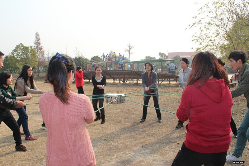 上午10点,拓展训练正式拉开帷幕。培训师首先将参训人员分成3个小组。经过简短的商定,各队确定了队长、队名、队歌以及各队的口号。拓展训练主要由敲同心鼓、走大脚板、赛龙舟架等项目组成。每一个拓展训练项目都要求所有队员密切配合、彼此信任、相互启发、共同完成。项目完成后,培训师带领大家进行交流总结,队员们坦诚回顾自己的感受,认真地总结经验和教训,大家都认识到合作、沟通、协调、责任对于整个团队的意义。经过一天的拓展训练,大家体会到拓展训练不仅是身体机能上的“拓展”,更是思维方式上的“拓展”;每个人不仅要注重个人能力的“拓展”,更要注重团队集体的“拓展”。