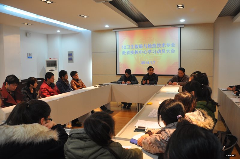 (胡鹤娟 摄)我院2012级卫生检验与检疫技术班圆满完成了在校1年半的学习,按照人才培养方案计划的要求,将于下学期初赴江苏省疾病预防控制中心由行业一线专家、教师指导完成专业知识和技能的学习。医学技术学院于1月8日下午召开2012卫检专业赴省疾控学习动员大会,医技学院领导、教务处金振宏科长及班主任老师等参加会议。会上,医技学院副院长肖波、党总支副书记黎明对同学们在省疾控中心学习、生活等各方面提出了要求和期望,对安全等问题给予了关心和指导;医技学院唐建中副院长、教务处金振宏科长亲切地与同学交流,耐心解答大家的相关问题。本次动员大会让同学们明确了学习的目的和要求,初步了解在南京学习生活的情况,对即将开始的学习生活充满期待。